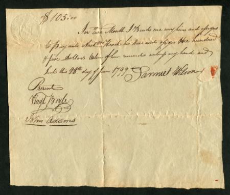 Bluish laid paper. Promissory note. 1799. Sharp strike, VF