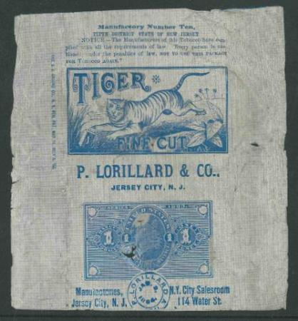 Tiger Fine Cut Tobacco. P. Lorillard & Co., Jersey City, New Jersey.