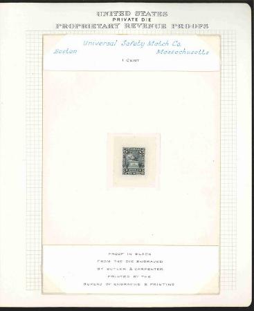 1862-71 1c black BEP die proof, india die sunk on 151x221mm card. Mounted on Joyce album page, VF