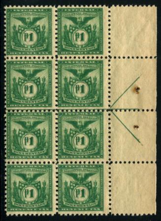 PI W725 right margin arrow block of eight, mint, F tropical gum