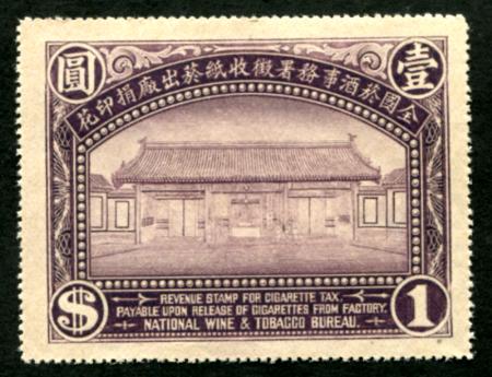 CHINA Cigarette Tax, 1912 $1 purple, mint, VF