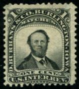 31 |  | | | D. Burhans & Co. Burlington, Iowa Scott RO46a 1862-71 1c black on old F-VF short perf |