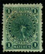 34 |  | | | Leeds, Robinson & Co. Boston, Massachusetts (Raynham Match Co. Raynham, Mass.) Scott RO124d 1878-83 1c green on watermarked F-VF tiny thin |