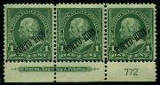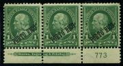 | Item Status  | | | 146 |  | | | Scott PR 210 1899 1c yellow green (Benjamin Franklin) bottom BEP imprint & plate No. 773 strip of three, mint, NH, F