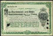 178 |  | | | Baltimore and Ohio Railroad Co. common stock certificate, 10 shares. 1914. International Bank Note Co. New York imprint. Old train vignette. Netherlands embossed revenue stamp. Cancelled, VF |