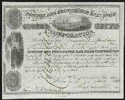 180 |  | | | Boston & Providence Rail Road Corporation stock certificate. Boston, Massachusetts. 1852. Harbor and river vignettes. Cancelled, VF |