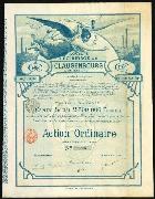 198 |  | | | Societe D'Eclairage de Clausenbourg & Extensions stock certificate. Brussels. 1922. Belgium imprinted revenue stamps. Issued, F-VF |