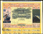 200 |  | | | Compagnie Des Claridges Hotels stock certificate. Paris. 1921. France and Belgium imprinted revenue stamps. Ship and train vignettes. Issued, VF |