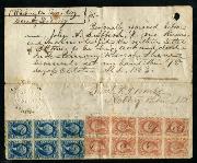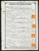 | 3 |  | | | Scott R24b 1862-71 5c Certificate, red block of eight (2x4) and R32c block of six (2x3) on a portion of a document notarized in King County, Washington Territory. 1863. Fine, small faults |