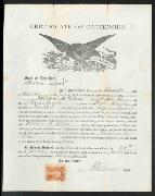 | 2 |  | | | Scott R23c 1862-71 5c Agreement, red Certificate of Citizenship for William H. Glass. Steuben County, New York. 1869. F-VF small document flaws |