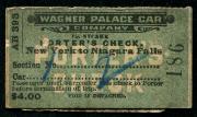 | 12 |  | | | Scott R163 1898 1c pale blue Wagner Palace Car Company Porter's Check, New York to Niagara Falls. Vertical pair of stamps on the back, F-VF |