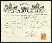 Boston & Providence Rail Road Shellabear-Tolman / Scott B-9, R15c 1862-71 2c U.S. Internal Revenue, orange black cds ties stamp to a Studley's New Haven & Harlem R.R. Baggage Express billhead. New York City & Brooklyn, N.Y. 1865. Train and freigh wagon vignettes. VF