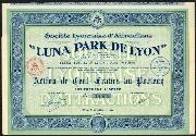 | 182 |  | | | Societge Lyonnaise d'Attractions, Luna Park De Lyon stock certificate. Lyon. 1921. Issued, VF |