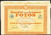 | 177 |  | | | Societe de Lampes Fotos stock certificate. Paris. 1928. Vignette of a light bulb. Issued, VF |
