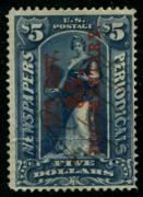 | Lot | | | Description | | 12 |  | | | Scott R160 1898 $5 dark blue, surcharge reading up used, F-VF crease & thin |