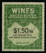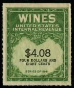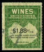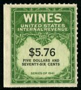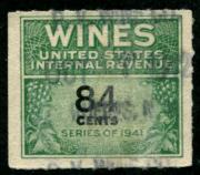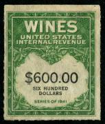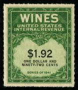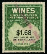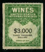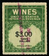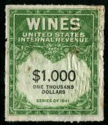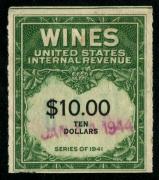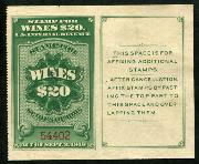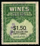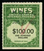 | 27 |  | | | Scott RE58 1916 $50 green Italian Vineyards Co. handstamp & perfin cancels. 1928. Used during Prohibition. VF creased between stamp & tab |