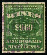 | 43 |  | | | Scott RE177 1949 $6 yellow green & black staple holes, F |