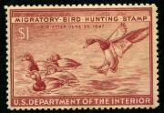 | Item Status  | | | | | 67 |  | | | Scott RW13 1946 $1 red brown, Redhead Ducks mint, NH, F-VF |