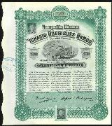 Mexico Documentos y LibrosRoberts DO4021910-11 10c black (Miguel Hidalgo)imprinted twice in black on a Compania Minera "Ignacio Rodriguez Ramos" stock certificate. Monterey, N.L., Mexico. 1910. Issued, VF