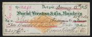 | | | Item Status  | | | | | 195 |  | | | Scott RN-G1. Detroit, Michigan. David Preston & Co., Bankers bank check. 1878. Green on white. Printed by Calvert Lith. Co., Detroit. Used, VF |