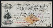 | | | Item Status  | | | | | 196 |  | | | Scott RN-G1. Helena, Montana. Banking House of L.H. Hershfield & Brother bill of exchange Drawn on Kountze Brothers, Bankers, New York. 1880. Black & red on white. Printed by American Bank Note Co., New York. Lady with scale, ship in background. Used, VF |