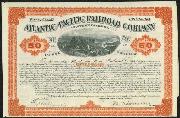 | 213 |  | | | Atlantic and Pacific Railroad Company $50 income mortgage bond. 1880. 60 coupons. American Bank Note Co. N.Y. & Boston imprint. Great vignette. Issued, VF |