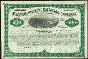 | 215 |  | | | Atlantic and Pacific Railroad Company $500 income mortgage bond. 1880. 33 coupons. American Bank Note Co. N.Y. & Boston imprint. Great vignette. Issued, F-VF small faults |