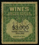 | 33 |  | | | Scott RE171 1942 $3000 yellow green & black perfin, VF light varnish and small faults |