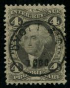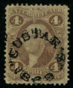 | | | Item Status  | | | | | 79 |  | | | Dr. R.F. Clark. Lowell, Massachusetts Scott R22c 1862-71 4c Proprietary, purple black SON cds, F small margin nick |