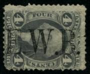 | | | Item Status  | | | | | 82 |  | | | E.W.B. Scott R22c 1862-71 4c Proprietary, purple black handstamp cancel reading up, F perf faults |