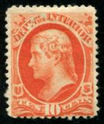 | Item Status  | | | | | 173 |  | | | Scott O100 1879 10c Interior Department, vermilion (Thomas Jefferson) mint, HR, F |