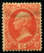 | Item Status  | | | | | 174 |  | | | Scott O101 1879 12c Interior Department, vermilion (Henry Clay) mint, HR, F-VF pinhole |