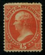 | Item Status  | | | | | 175 |  | | | Scott O102 1879 15c Interior Department, vermilion (Daniel Webster) mint, HR, F-VF |