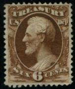 | Item Status  | | | | | 176 |  | | | Scott O110 1879 6c 6c Treasury Department, brown (Abraham Lincoln) unused, no gum, F-VF |
