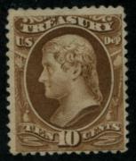 | Item Status  | | | | | 177 |  | | | Scott O111 1879 10c Treasury Department, brown (Thomas Jefferson) unused, no gum, F |