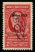 | Lot | | | Description | | 32 |  | | | Scott R604 1952 $2.75 carmine (L.J. Gage) used, VF natural straight edge at top |