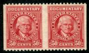 | Item Status  | | | | | 33 |  | | | Scott R664a 1954 50c carmine (William J. Duane) horizontal pair imperforate vertically, mint, VF folded between stamps |