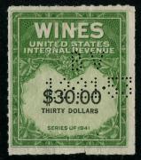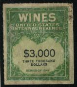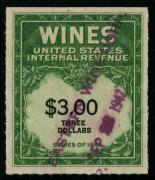 | 48 |  | | | Scott RE154 1942 $3 yellow green & black Eastern Wine Corp. purple h/s, staple holes, VF |