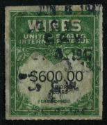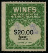 | 49 |  | | | Scott RE162 1942 $20 yellow green & black violet handstamp and staple holes, VF light stain on back |