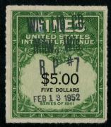 | 52 |  | | | Scott RE172 1942 $4000 yellow green & black used, VF usual staple holes and varnish |