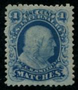 | 96 |  | | | W.D. Curtis Matches. Oshkosh, Wisconsin Scott RO68b 1871-77 1c green on silk F few short perfs |