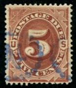 | 201 |  | | | Scott J18 1884 5c red brown used, blue handstamp, F-VF thin spot |