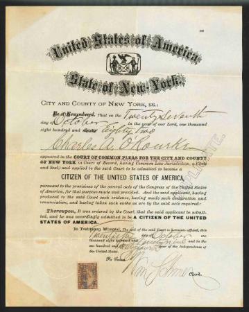 Citizen of the United States granted by the Supreme Court of New York, duplicate copy. 1899. F-VF toning