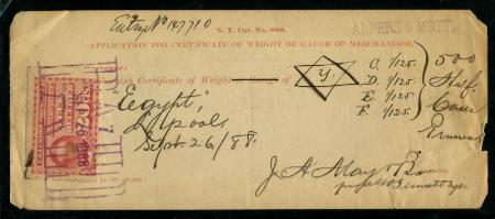 Application for Certificate of Weight or Guage of Merchandise. 1889. Stamp tied by violet h/s. F-VF small margin faults