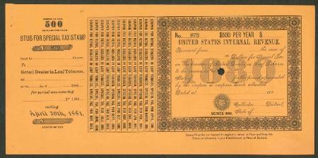 Retail Dealer in Leaf Tobacco 1880 $500 black (orange) punched remainder, VF
