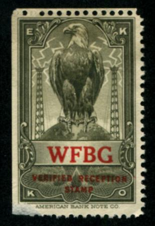 WFBG Altoona, Pennsylvania. Olive & red. Unused, F-VF small abrasion at bottom left corner