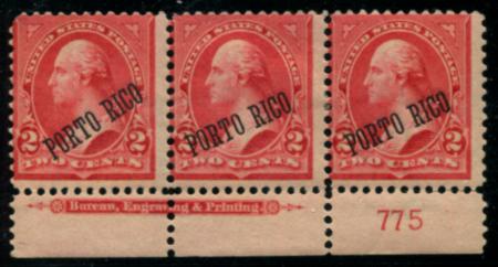 PR 211 bottom BEP imprint & plate No. 775 strip of three, mint, HR, F | Description |  |