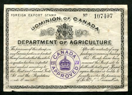 CANADA Meat Inspection MIFC2.3 used, F-VF small faults and soiling