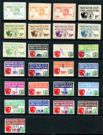 STATE REVENUES Washington Apple Advertising stamps, collection of 25 different. Mint & used, F-VF