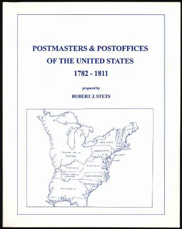 Postmasters & Postoffices of the United States 1782-1811 by Robert J. Stets. A alpha listing of postmasters and post offices, then by state with counties and dates. 1994. Card covers. iii, 290 pages. Used, VF